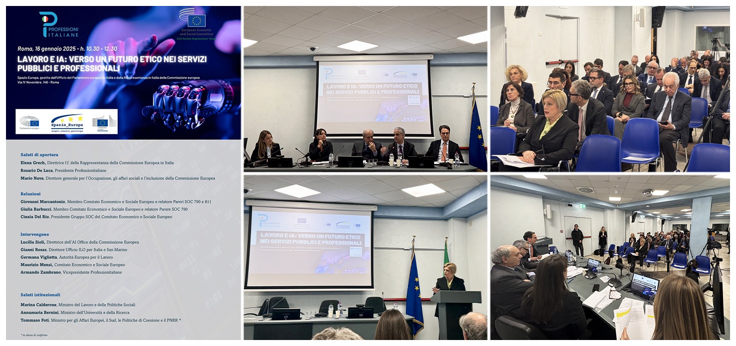 Un confronto importante, d’alto livello e internazionale quello organizzato presso lo Spazio Europa, a Roma dall’Associazione 23 Consigli Nazionali  e oltre 2,3 milioni di professionisti che devono fare i conti con l’impatto dell’IA.