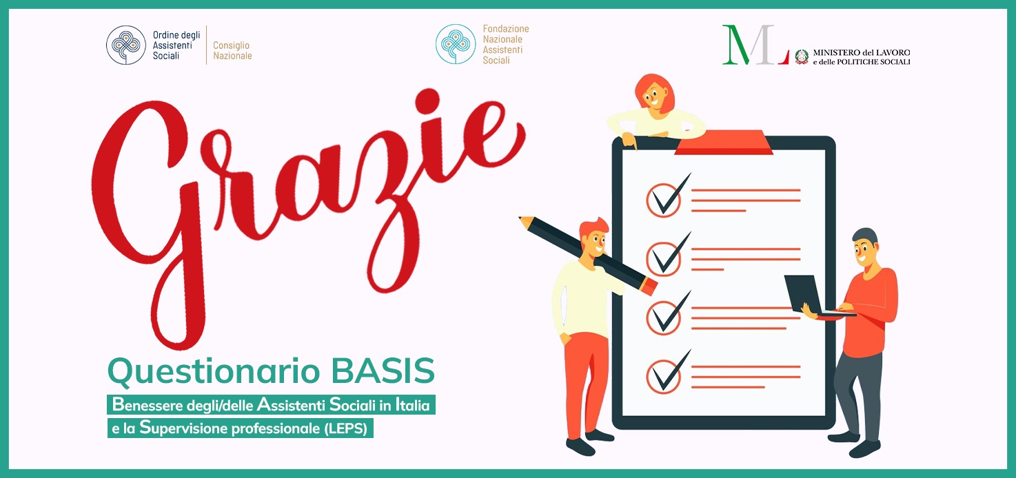 Il Consiglio Nazionale degli Assistenti Sociali e FNAS desiderano ringraziare tutte e tutti le/i 22592 assistenti sociali che hanno risposto questionario BASIS.