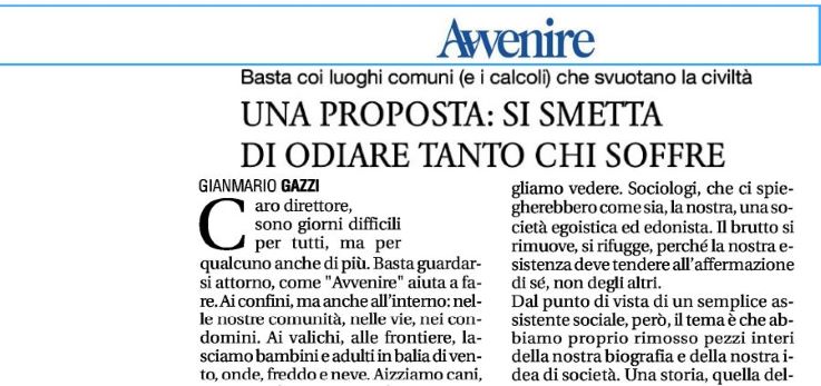 Ringraziamo Avvenire per aver dato spazio a questa nostra riflessione.